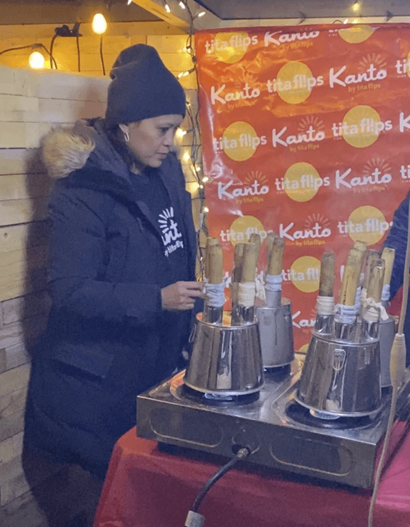 When you’re purchasing something that’s made right in front of your eyes, in a strange-looking metal contraption that steams and hisses, cooked over a propane stove–it’s gotta be good, it’s gotta be authentic, right? Kanto by Tita Flips sold made-to-order bibingka, and the line-up was long for their orders.