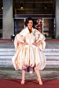 It can be traditional, or it can take on an entirely different form with a new skirt structure, altered shoulder lines, and a different architectural balance.