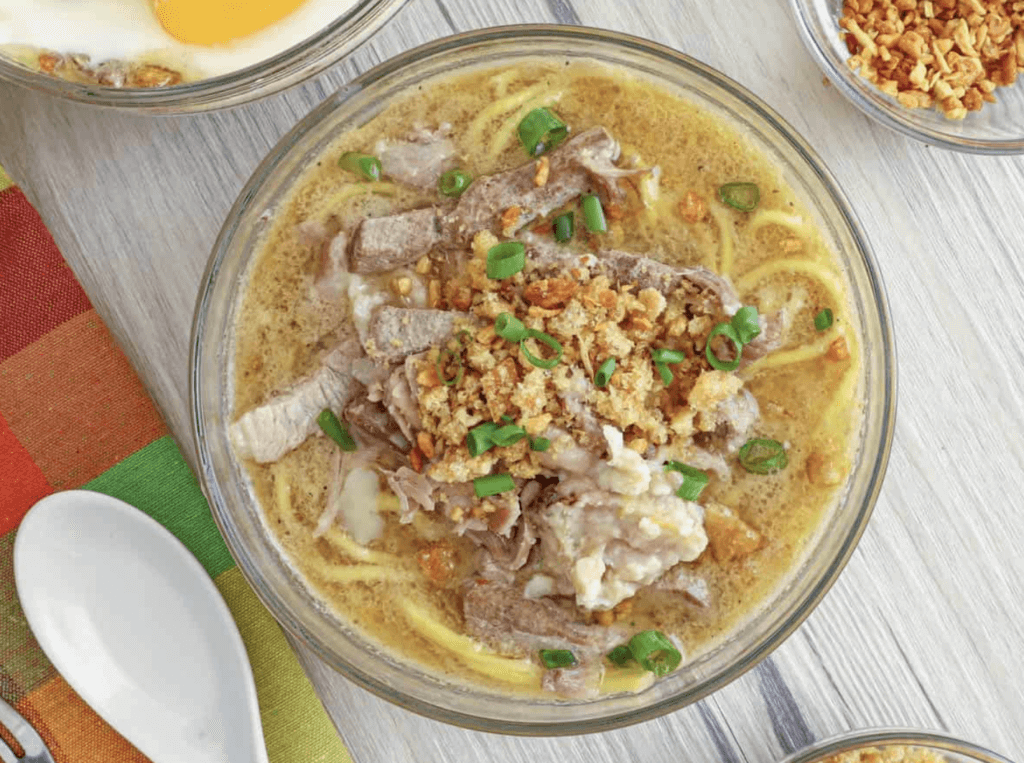 With its rich pork broth, miki noodles, and toppings like crushed chicharron and pork liver, this dish is perfect for slurping on a cold day.
