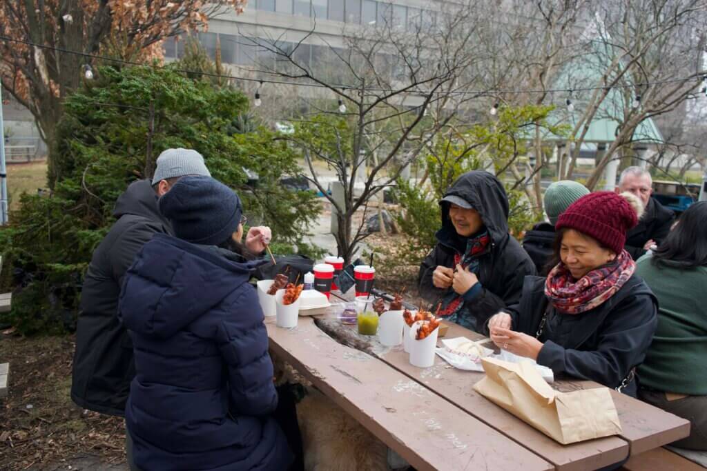 The lively chatter in Tagalog surrounds you, along with the many Filipino food vendors lining Mel Lastman Square.