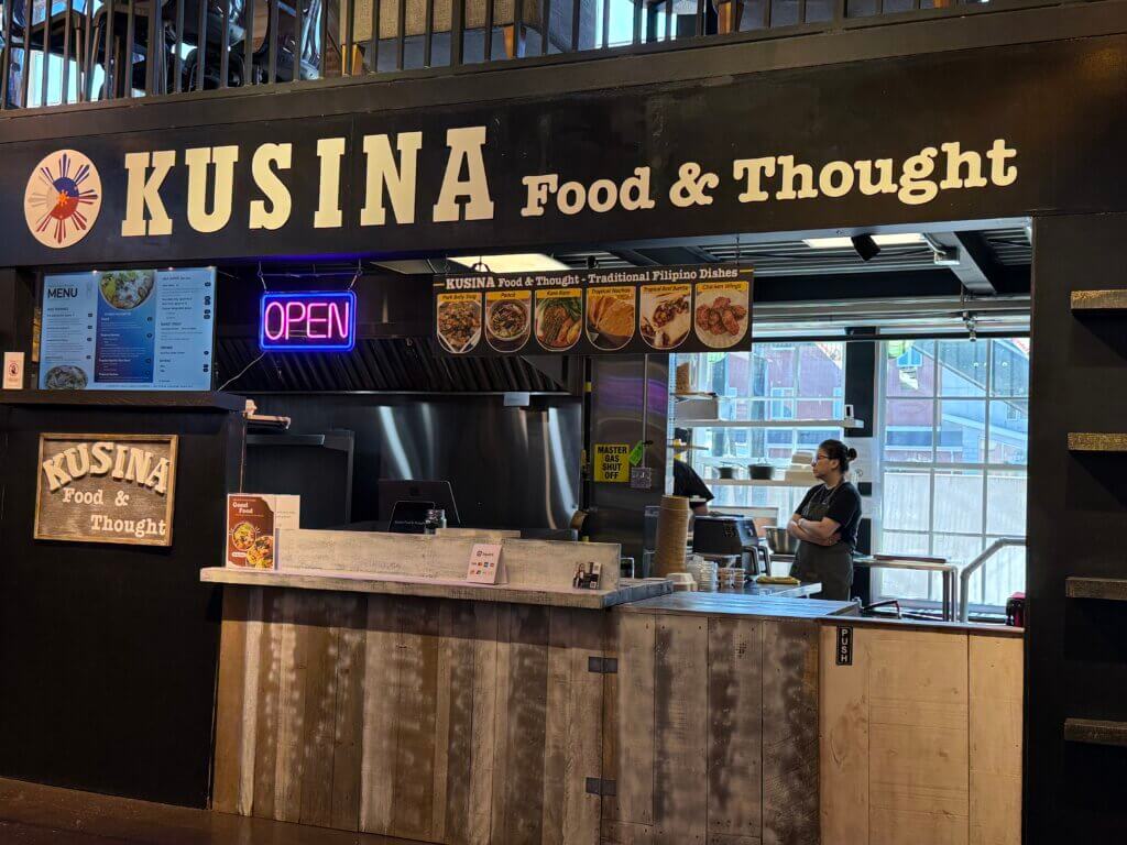 Picture this: you walk into Charlottetown’s Founders’ Food Hall & Market, stroll around and see the souvenir shops, the fudge store (made from potatoes, no less), the French patisserie with its fancy displays, and then you see it—the word “Kusina” (kitchen) on a food kiosk.