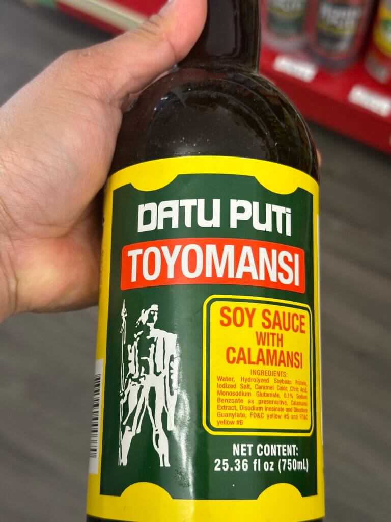 Toyomansi is made of toyo (soy sauce) with calamansi (Philippine lime).