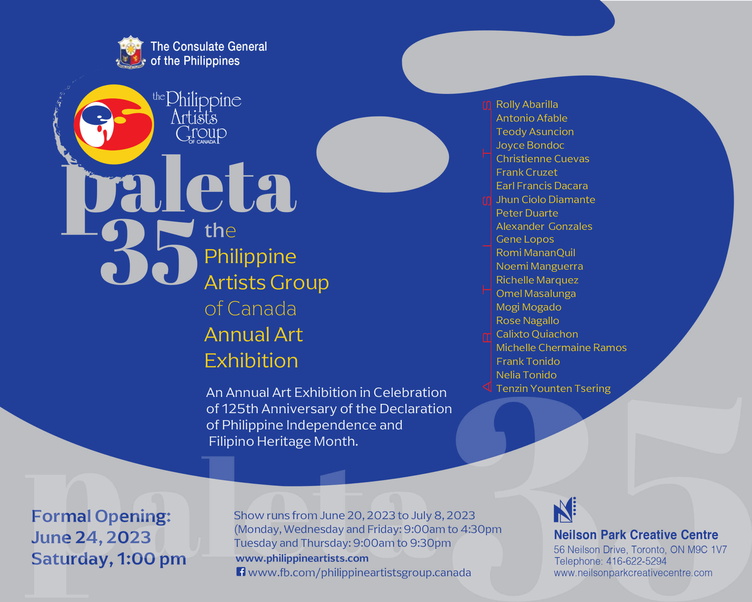 From the Philippine Artists website: Paleta 35 is an annual exhibition showcasing the latest works of established and emerging Filipino-Canadian artists. This event celebrates the cultural diversity and artistic expression of the Filipino-Canadian community, and features a stunning display of contemporary art. Whether you are an art collector, enthusiast, or simply looking for a night of inspiration and creativity, Paleta 35 promises to be an engaging and memorable event.