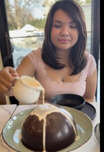 Yes, you heard that right: champorado with a dramatic chocolate dome that melts when you pour hot milk over it, because why not?
